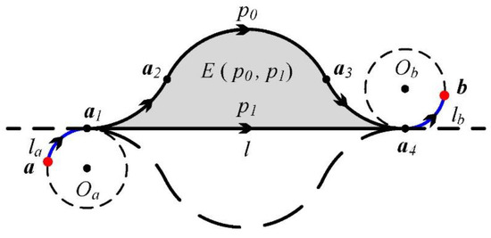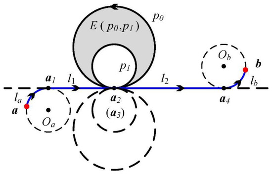 - In stage 2, the path with the expected length for each UAV is planned based on the recovery position and recovery path length. Only the Dubins path connecting the initial position and recovery position of a UAV is selected from stage 1 of this layer to construct the path homotopy. Then, the homotopic path planning approach is employed to generate a path with the expected length for the UAV. In the end, the related control parameters of the ideal path are transmitted to the control system for path tracking.