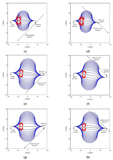 - Trajectory assumption. The trajectory of the mother aircraft is predefined and it is projected to a two dimensional plane for consideration. The aerial recovery process is considered to be a long-range mission and the execution time of the process is concerned with the mother aircraft trajectory.