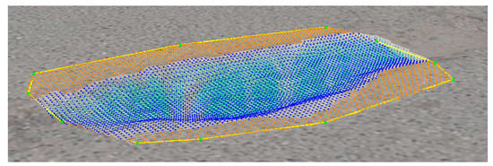 The first analysis was carried out at a height of 10 [m] applying the recommendations detailed above. The results are shown in Table 7, in addition to Figure 13, where the reconstruction of a pothole in the case study can be observed.