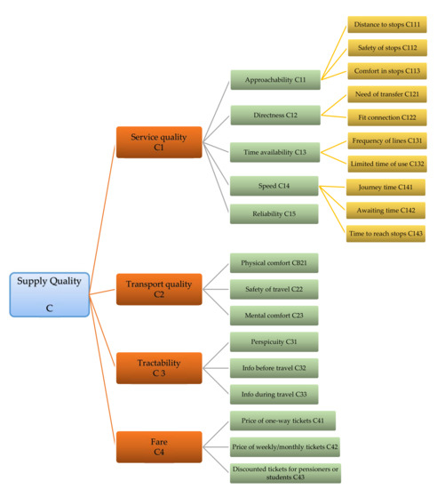 Step 1: Identify the main and submain criteria for public bus transport supply quality.