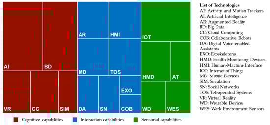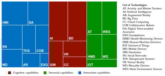 Treemap chart of the perceived beneficial impact of Operator 4.0 enabling technologies.
