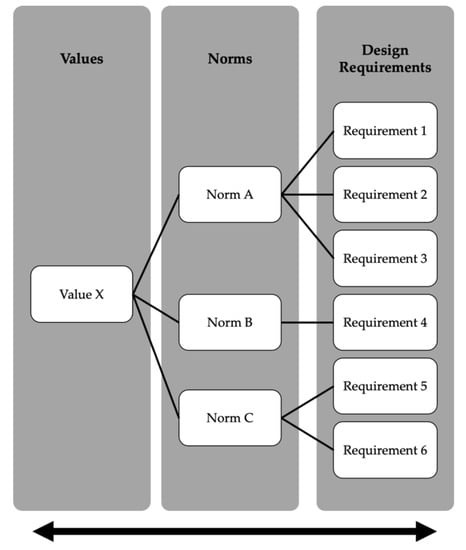 - van de Poel, I. Translating Values into Design Requirements BT. In Philosophy and Engineering: Reflections on Practice, Principles and Process; Michelfelder, D.P., McCarthy, N., Goldberg, D.E., Eds.; Springer: Dordrecht, The Netherlands, 2013; pp. 253–266. ISBN 978-94-007-7762-0. [Google Scholar]