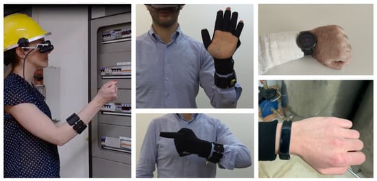 Example of wearable technology—from left to right, wristbands, gloves, smartwatches—augmenting workers’ perception capabilities.