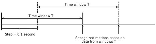 These parameters were calculated for different time window widths, i.e., T ∈ {0.1, 0.2, 0.3, 0.4, 0.5, 0.6, 0.8, 1.0, 2.0} given in seconds. The work focuses on the causal recognition mode of the gestures for which the time windows are determined for current and past samples only. The consecutive windows were shifted by a 0.1 s time step as shown in Figure 3.