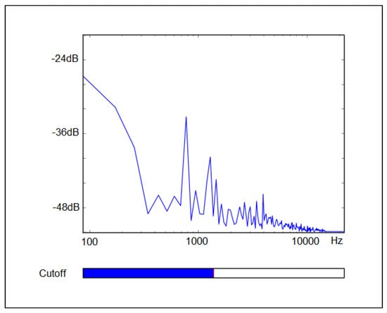 Real-time spectrum of the output signal and low-pass filter cutoff parameter control.
