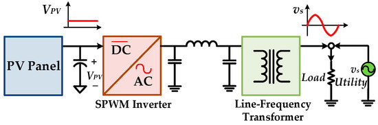 Today, because photovoltaic (PV) energy is noiseless, pollution-free, non-radioactive and inexhaustible, PV grid-connection power systems are receiving increasing attention [1,2,3]. For the PV grid-connected systems, inverters are necessary to convert the DC voltage of the PV panel to an AC voltage, and then supply power in parallel with utility-line. Therefore, many experts have invested in the research of the circuit architecture and control strategy of inverters [4,5,6,7]. The full-bridge voltage-source inverter is the popular topology in low-power PV grid-connected systems. However, due to its buck-typed conversion, a line-frequency transformer has to be inserted between the inverter and utility-line. This system structure greatly increases the volume, weight and cost of the system, and reduces the power density.