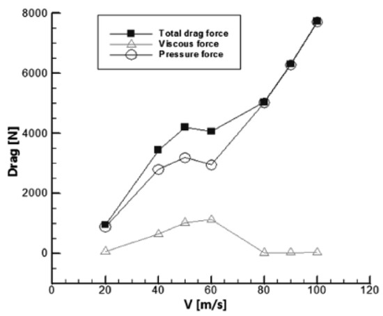 Analysis of drag unsteady state pressure force and viscous force at 50 m/s.