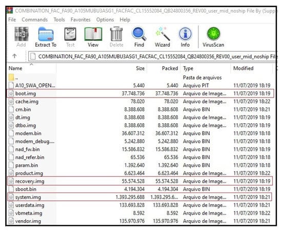 From a forensic point of view, other interesting features can be explored through a Combination Firmware. It allows bypassing and removing factory reset protection or Google account verification. However, the main point of interest is to allow full access to the device content since replacing the original firmware with Combination Firmware does not change the data partition. This preserves data integrity and allows physical acquisitions, file system acquisitions, and logical acquisitions to be made using forensic tools. It is also possible to enable the root user if necessary. According to Almehmadi and Batarfi [32]—who investigated the impact on user data integrity by enabling the root user on an Android smartphone—, modifications to the device data do not affect the user data Such a process is, therefore, legally valid and evidence extracted from Android devices, as a result of the rooting process, is robust and reliable for sentencing in criminal cases.