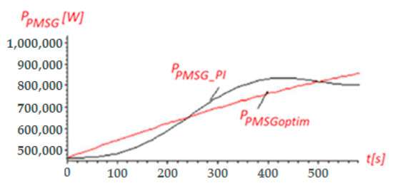 - the PMSG’s optimal power calculated from the kinetic motion equation, defined in Equation (49) ()