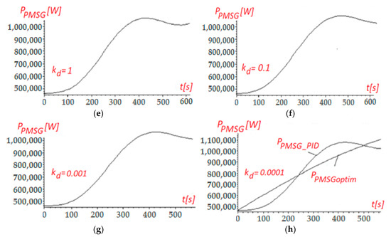 - the PMSG’s power obtained by using either the PI- or PID-type regulators, , resulting from either Equation (62) or Equation (67).