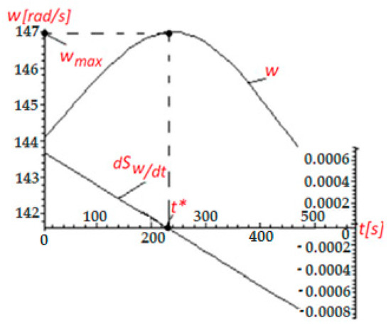 Remark 6: At the moment, the derivative of the wind speed is canceled (see Figure 6), and the PMSG’s angular speed, , reaches its maximum, .