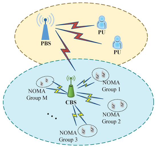 On the other hand, CR (one of the promising techniques to improve SE), has been extensively investigated for decades. In it, cognitive users (CUs) can utilize the licensed spectrum bands of the primary users (PUs) as long as the interference caused by the CUs is tolerable [14,15,16]. Goldsmith et al. in [17] proposed three operation models (opportunistic spectrum access, spectrum sharing, and sensing-based enhanced spectrum sharing) to exploit the CR technique in practice. It is conceivable that the combination of CR with NOMA technologies is capable of further boosting the SE in wireless communication systems. Therefore, many studies on the performance of spectrum-sharing CR combined with NOMA have been analyzed [18,19].