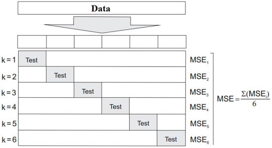 The system of the k-fold cross-validation supposes operations, in which the training algorithm utilizes subsets to train, and it lets out one of them. The out subset is rotated at each iteration such as at the final of operations, all the data form part of the training and testing in one moment ( time to train and to test). The measure of the error is the arithmetic mean of errors in different iterations; one example can be seen in Figure 3 for .