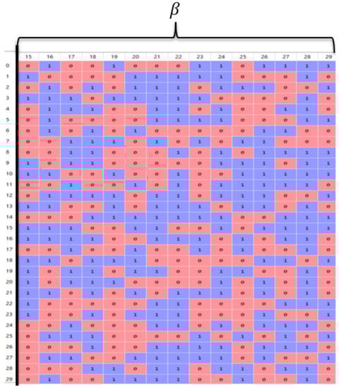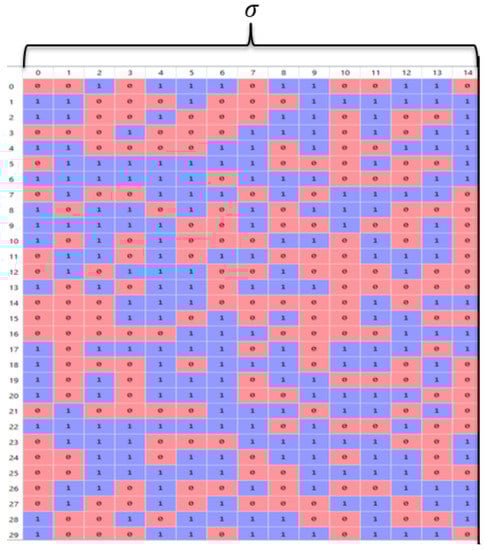 To find the best values for the hyper-parameters: we use the width of the Gaussian mapping in an interval of –; the momentum constant in an interval of and ; the probability of crossing of ; the probability of mutation of ; the population per generation of ; the number of families of ; the number of generations of ; the value of is , (k-fold cross-validation); and the competitors of three. We used the methodology described in Figure 4 and Equations (5)–(8) to find the best values for the RBM network of Equations (1)–(4) for improving the algorithm performance. The genetic algorithm finds the best hyper-parameters for the RBM network of the Table 2.