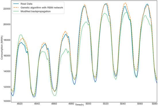 Finally, since the suggested approach called genetic algorithm with an RBM network starts from the modified backpropagation, we compare both approaches for the electricity consumption modeling in a city.