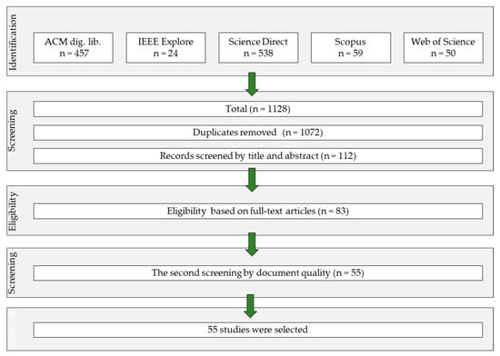 The quality assessment was achieved by evaluating each paper according to nine questions provided in [], which pursue the fulfillment of certain conditions so that the study can be considered as being of appropriate scientific quality. The quality assessment helps to analyze the studies in order to verify the degree of compliance with certain pre-established standards. The papers were screened based on the quality criteria represented by the nine questions as follows: each article received a score depending on how the respective criterion was met. If the study answered all those criteria satisfactorily, it was kept, if not, it was rejected. These criteria refer to the content (e.g., a clear description is provided by authors, appropriate explanation for the proposed method, the results are correctly presented, etc.), but also to the implications or importance of the study for the scientific community.