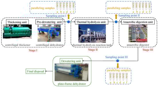 Sludge-treatment process and distribution of sampling points of Beijing Gaobeidian Wastewater Treatment Plant.