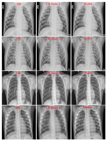 - Xu, L.; Zeng, X.; Huang, Z.; Li, W.; Zhang, H. Low-dose chest X-ray image super-resolution using generative adversarial nets with spectral normalization. Biomed. Signal Process. Control 2020, 55, 101600. [Google Scholar] [CrossRef]