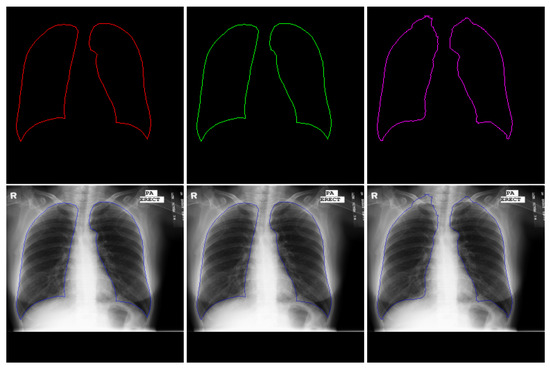 - Candemir, S.; Jaeger, S.; Palaniappan, K.; Musco, J.P.; Singh, R.K.; Xue, Z.; Karargyris, A.; Antani, S.; Thoma, G.; McDonald, C.J. Lung segmentation in chest radiographs using anatomical atlases with nonrigid registration. IEEE Trans. Med. Imaging 2013, 33, 577–590. [Google Scholar] [CrossRef]