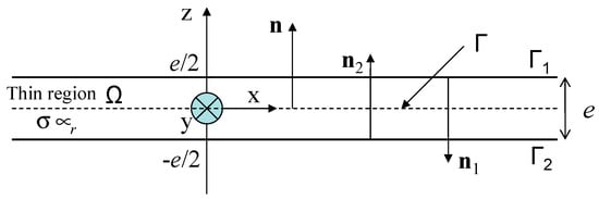 A thin electromagnetic shell (Ω) with thickness e, conductivity σ and linear permeability μr in this study is illustrated in Figure 1, where Г1 and Г2 are the surface boundaries of the shell with the air region.