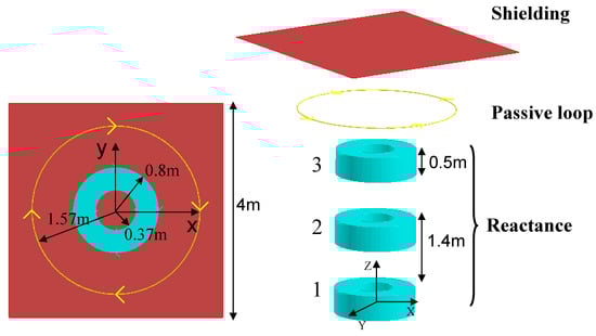 In nominal conditions, a three-phase reactance generate a leakage induction in the neighborhoods. In order to minimize this electromagnetic disturbance, an electromagnetic shielding and a passive loop are added between the magnetic field source and the protected area (Figure 7). The device parameters are presented as below: