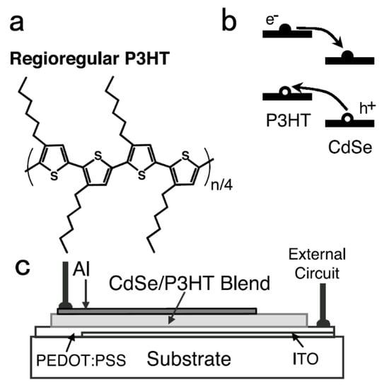 27. Huynh, W.U.; Peng, X.; Alivisatos, A.P. CdSe nanocrystal rods/poly (3-hexylthiophene) composite photovoltaic devices. Adv. Mater. 1999, 11, 923–927. [Google Scholar] [CrossRef]