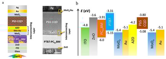 83. Tong, J.; Yang, X.; Xu, Y.; Li, W.; Tang, J.; Song, H.; Zhou, Y. Efficient top-illuminated organic-quantum dots hybrid tandem solar cells with complementary absorption. ACS Photonics 2017, 4, 1172–1177. [Google Scholar] [CrossRef]