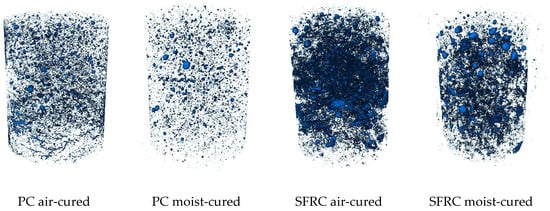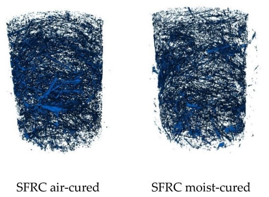 The differences observed in pore morphology and distribution between plain and fiber-reinforced-concrete and between moist- and air-cured conditions could have an impact on certain mechanical behaviors directly related to porosity, e.g., freeze–thaw cycles or fatigue.