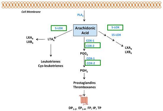- Smith, W.L.; Urade, Y.; Jakobsson, P.-J. Enzymes of the Cyclooxygenase Pathways of Prostanoid Biosynthesis. Chem. Rev. 2011, 111, 5821–5865. [Google Scholar] [CrossRef]