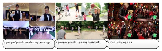 - Pan, Y.; Mei, T.; Yao, T.; Li, H.; Rui, Y. Jointly modeling embedding and translation to bridge video and language. In Proceedings of the IEEE Conference on Computer Vision and Pattern Recognition, Las Vegas, NV, USA, 27–30 June 2016; pp. 4594–4602. [Google Scholar]