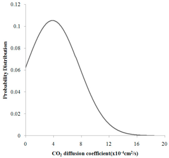 As shown in Figure 2, this study used a CO2 diffusion coefficient with an average of 3.87 × 10−4 cm2/s and a standard deviation of 3.79 × 10−4 cm2/s for a CO2 diffusion coefficient based on previous studies [22].