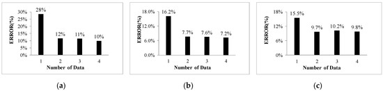 Sensitivity analysis for the optimized number of on-site data. (a) Gajwa IC viaduct; (b) Noryang bridge; (c) Geoje bridge.