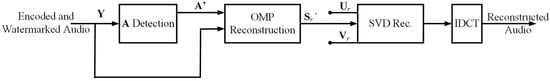 - Fakhr, M.W. Robust Watermarking Using Compressed Sensing Framework With Application To MP3 Audio. Int. J. Multimed. Its Appl. (IJMA) 2012, 4, 27–43. [Google Scholar] [CrossRef]