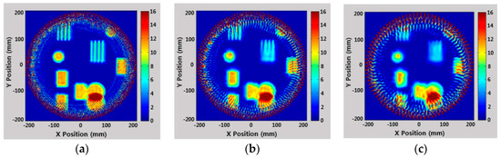 Simulated result from the Difference Hilbert Back Projection (DHB) algorithm: (a) 180 Point; (b) 120 Point; (c) 90 Point.