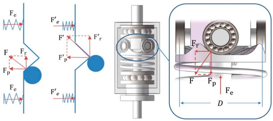 The key part of the automatic clamping robot arm is an automatic clutch. The robot arm can clamp the plate specimen with different shapes automatically by using this part, and the clamping force is adjustable. As shown in Figure 18, two transmission shafts are connected together based on elastic force. Those two shafts will always be connected if is not bigger than a maximum value. Otherwise, no force can be transferred through this mechanism. The corresponding calculation formulas are shown in Equations (10) and (11).