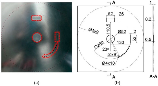 Circular defect specimen #1: (a) Circular defect specimen; (b) Circular defect specimen drawing (Unit: mm).