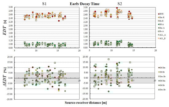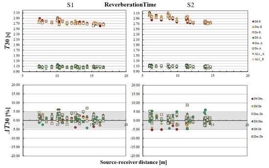 | ΔEDT [%] | ΔT30 [%] | ΔC80 [dB] | ΔD50 [%] | ΔTs [s] | ||||||||||||
