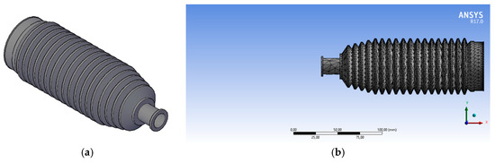 3D model of a cuff: (a) isometric view; (b) the mesh of finite elements.
