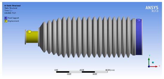 The boundary conditions were given, as in the experimental tests (max. stretching 75 mm), Figure 9.