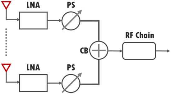 - Abbas, W.B.; Gomez-Cuba, F.; Zorzi, M. Millimeter Wave Receiver Efficiency: A Comprehensive Comparison of Beamforming Schemes With Low Resolution ADCs. IEEE Trans. Wirel. Commun. 2017, 16, 8131–8146. [Google Scholar] [CrossRef]