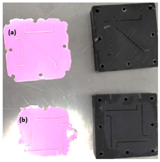 A rubber-based solution needs to have the correct amount of each component so that it can be poured into the mold without having excess solution. This is very important due to the restriction posed by the rubber plate’s width. If too much solution was poured into the mold, it would result in an increase of the desired width of the rubber plate. After several tests, it was determined that the best components and quantities were white rubber and chemical catalyst, with a composition of 80% rubber and 20% catalyst and a total mass of 20 g. The components were poured onto a Petri dish placed on a digital balance to eliminate excess materials. After the masses were verified, elements were mixed with a sterile flat-end laboratory spatula.