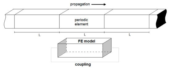 Scheme showing the portion of the waveguide modeled using 3D finite element analysis (FEM) for the Sorohan et al. [] in the semi-analytical finite element method (SAFE) implementation.
