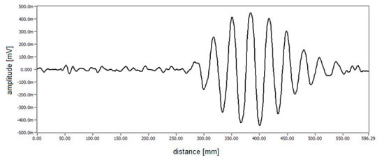 The acquisition frequency and the distance between the points considered in the scan line must be adequate to avoid the aliasing effect in the data acquisition. The Nyquist theorem [] indicates a frequency of acquisition as at least twice the frequency of the signal, in this case, the excitation frequency, and considering the space domain. The sample size must contain a complete period plus a half period before and after it. The distance between points in the scan line must also follow this premise, that is, the scan line needs to contain enough points to precisely describe two periods of the shortest wavelength expected in the space domain.