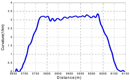 - Hur, H.M.; Park, J.H.; You, W. Curvature estimation method of curve section using relative displacement between body and bogie of rolling-stock. Trans. Korean Soc. Mech. Eng. A 2012, 36, 1479–1485. [Google Scholar] [CrossRef][Green Version]