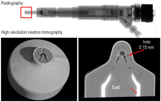 - Lehmann, E.; Grünzweig, C.; Jollet, S.; Kaiser, M.; Hansen, H.; Dinkelacker, F. Visualization of Diesel Injector with Neutron Imaging. J. Phys. Conf. Ser. 2015, 656, 1–4. [Google Scholar] [CrossRef]