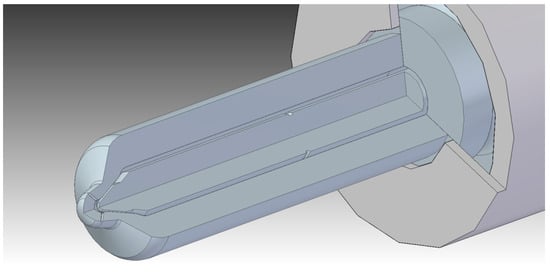 One basic geometry is a single hole nozzle, as is shown in Figure 8. The cylindrical orifice has a diameter of 200 µm and a length of 850 µm. The inlet of the orifice is slightly chamfered after drilling the orifice. Three transparent nozzles are manufactured with the same basic geometry (nozzle A). For two of them (nozzle B and C), a hydro-erosive rounding process is applied [15,16] to create a smooth curvature on their inlet. After this process, the actual nozzle shapes are slightly different (Figure 9). Both nozzles have a slight step at the nozzle inlet, being located for nozzle B “shortly” behind the inlet and for nozzle C about 100 µm downstream of the inlet (Figure 9). The detailed geometries of these cases are freely available on the Mendeley data base [17].