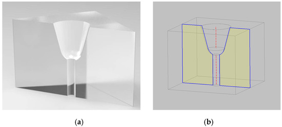 Sketch of transparent nozzles: (a) 3D cut model; (b) Wireframe with a center plane.