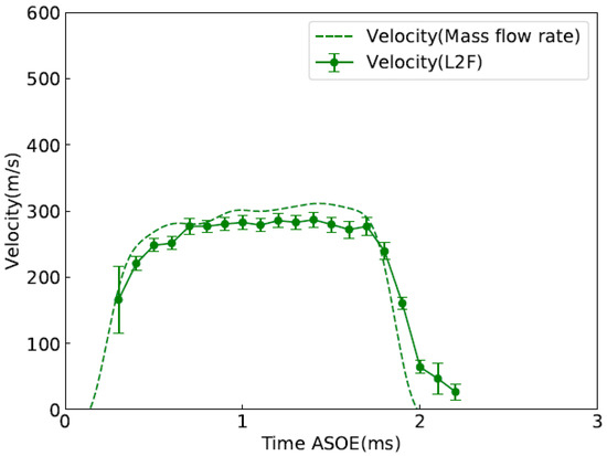 Time resolved velocity calculated from mass flow rate and velocity measured by L2F.