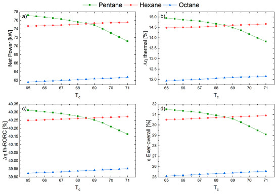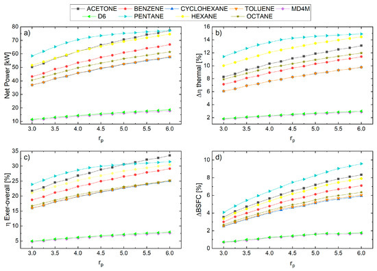 New fluids with almost zero ozone depletion potential and global warming have begun to be used in these systems as compared with the conventional refrigerants and working fluids that have been used today. Thus, the HFO (hydrofluoroolefin) group refrigerants are currently used as part of fluorinated refrigerants and are substitutes for CFCs. PFCs (perfluorocarbons) are also used to avoid destroying the ozone layer. In this paper, refrigerants from the alkane group were chosen because of their critical favorable conditions at high temperatures [26], in addition to being environmentally friendly, as are siloxanes. HCFCs (hydrochlorofluorocarbons) and CFCs (chlorofluorocarbons) were not considered because of their environmental effects under the Montreal Protocol [27]. HFCs (hydrofluorocarbons) were also excluded under the Kyoto Protocol [28].