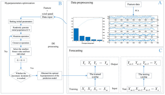 - A wind speed prediction algorithm considering meteorological features based on PCA and LSTM networks is presented. DE as a hyperparameter selection method is also included in the proposed method.
